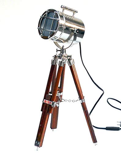 Nautical Vintage Spotlight Tripod Lamp Chrome & Brown Table Lamp