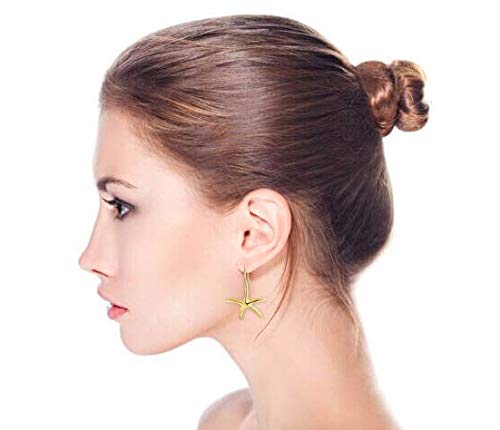 Moda Nautico Spiaggia Tropicale Grande Stella Marina Penzolare Orecchini Filettatore Per Le Donne Pesce Gancio Filo 14K Placcato Oro