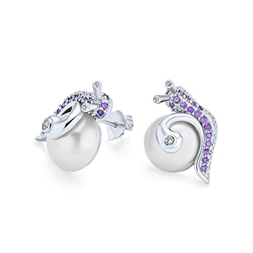 3D Nautico Viola Lavanda Cubica Zirconia Pave Lumaca Bianco Simulato Perno Orecchini Perno Per Donna Argento Placcato Ottone