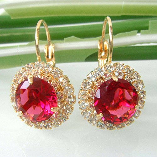 Navachi - Orecchini a cerchio placcati in oro 18 carati con zirconi bianchi e 18ct base metallo placcato oro, colore: Rosso, cod. HB6-2612-5