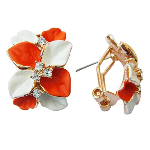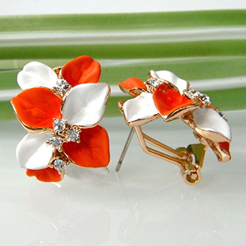 Navachi Orecchini Omega Az2299e a forma di fiore in smalto bianco arancione placcato oro 18k, Smalto, cristallo