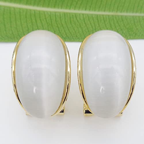 Navachi - Orecchini placcati in oro 18 carati con opale ovale e 18ct base metallo placcato oro, colore: White, cod. HB6-1802-1