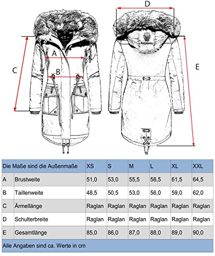 Navahoo, Lady Like, Cappotto invernale da donna con pelliccia sintetica rimovibile, 6 colori XS - XXL Nero L