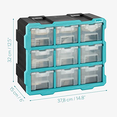 Navaris Armadietto Porta Attrezzi - Organizer Portautensili Componibile - Cassettiera Portaminuterie Officina 9x Cassetti Trasparenti - Cassetta Viti Bulloni