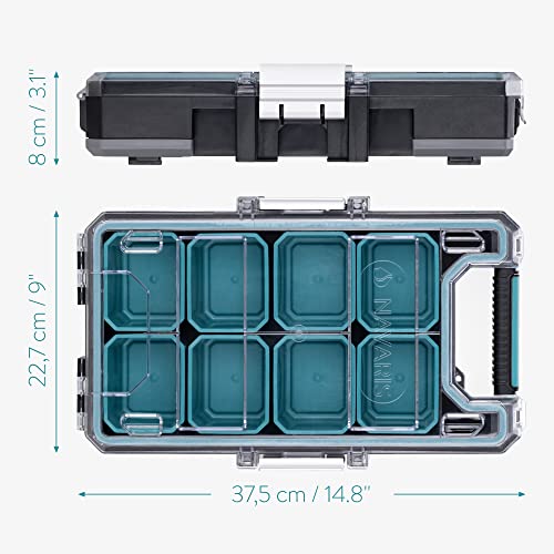 Navaris Armadietto Porta Attrezzi - Valigetta Portautensili Componibile - Cassettiera Portaminuterie Officina 8x Cassetti - Cassetta Viti Bulloni