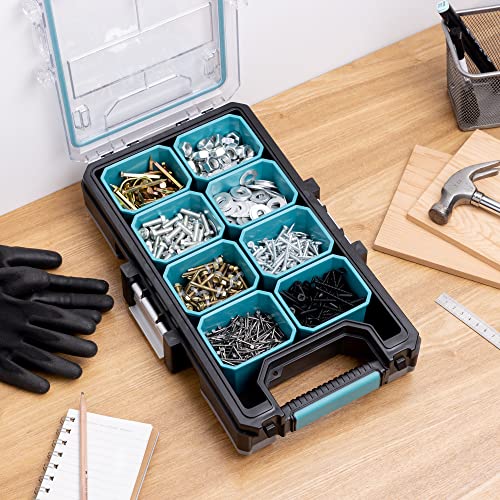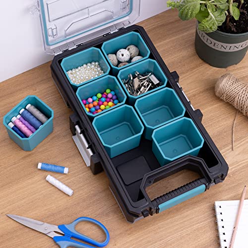 CAPIENTE: la valigetta porta attrezzi consente di disporre in ordine gli utensili da lavoro sul bancone del garage. Tieni i tuoi accessori metallici al sicuro nei separatori componibili.