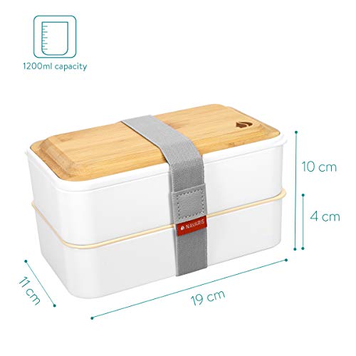 Navaris Bento Box Porta Pranzo - Lunch Box 2x Scomparti Posate e Coperchio in Bambù - Portapranzo Riscaldabile Ufficio Scuola Bambini Adulti - Crema