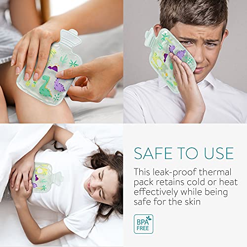 Navaris Set 2x Borsa Acqua Calda Termica per Bambini +2 Anni - Design Dinosauri - Cuscinetto Termico Gel Caldo/Freddo - Cooling Bag 18x11,4cm