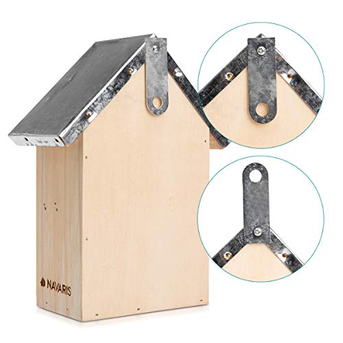 Navaris Casetta per insetti in legno - Rifugio Ecologico per farfalle vespe api coleotteri 15x8x20cm Nido Tetto in Metallo - Materiali Naturali
