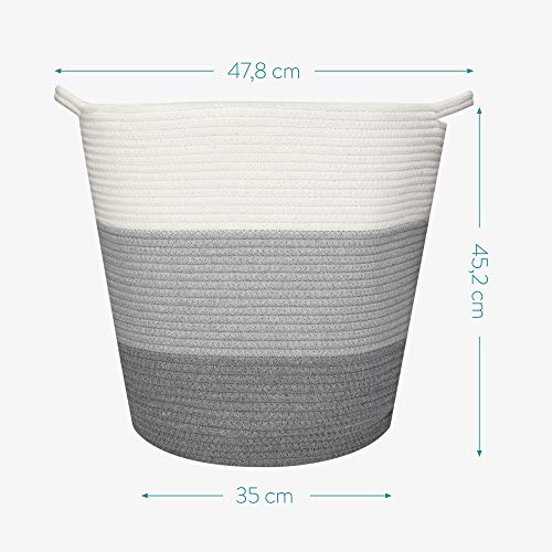 Navaris Cesto Cotone Intrecciato - Cesta Portabiancheria Portaoggetti - Grande Contenitore Asciugamani Lenzuola Coperta 47,8x35cm - Tessuto Naturale
