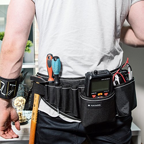 Navaris cintura porta attrezzi con fibbia a scatto - marsupio porta utensili con tasche scomparti asola per martello - fodero portattrezzi nero grigio