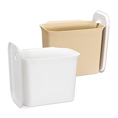 Navaris Contenitore Rifiuti Cucina da Appendere 5L - Set 2X Vaschetta Raccolta Scarti Organico - Contenitori Umido Pensili con Tappo - Bianco Beige