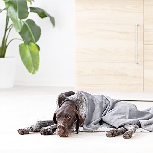 Navaris Set Cuccia con Coperta 2in1 - Materassino e Copertina Riscaldante in Morbido Pile per Cani Gatti - Tappeto Cane Gatto con Plaid Caldo - Grigio