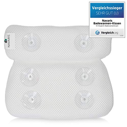 Navaris Cuscino Vasca da Bagno Extra-Comfort - Poggiatesta Air Mesh con 6 Ventose - Relax per Schiena Spalle Collo - per Piscina Idromassaggio - Bianco