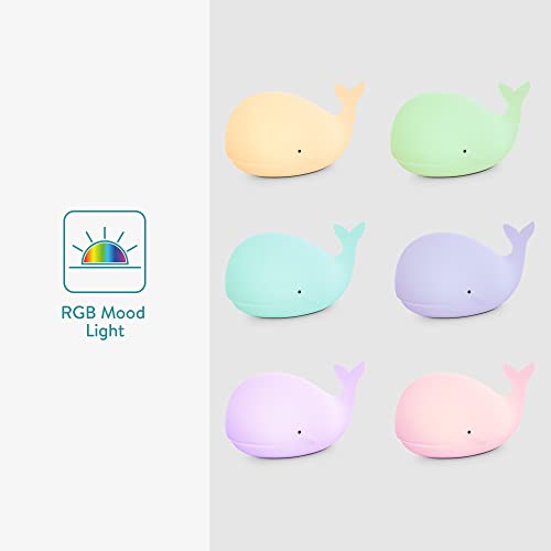 Navaris Lampada LED Luce Notturna - Lampada Bambini Design Balena con Cavo Micro USB 0,8 m - Lucina Cambio 15x Colori - Bianca - Ricaricabile
