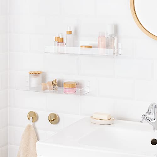 Navaris 2X Mensola Doccia Senza Foratura Rettangolare - Set Mensole Adesive 2 Pz - Portaoggetti Bagno Parete - Porta Sapone Adesivo - 38 x 10 x 6,8 cm