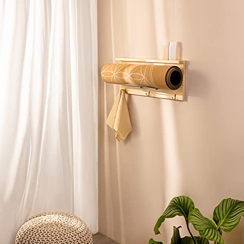 YOGA SHELF: robusta ma leggera da appendere alle pareti, la mensola sportiva è ideale all'ingresso di casa o in camera da letto per organizzare con ordine yoga mat e altri accessori per sport e tempo libero.