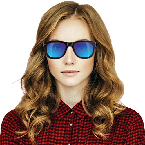 Navaris occhiali da sole in legno UV400 - occhiali unisex con montatura in legno Skateboard e lenti TAC polarized - lenti diversi colori