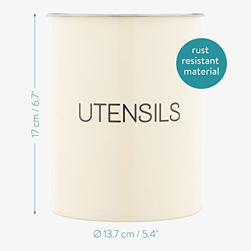 Navaris Porta Utensili da Cucina Moderna - Organizer Porta Mestoli Palette Sbattitore - Utensils Holder Ø13,7x17cm Portautensili Cucina - Ferro Crema