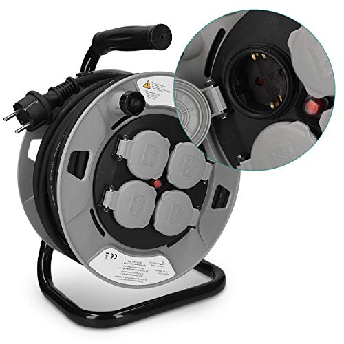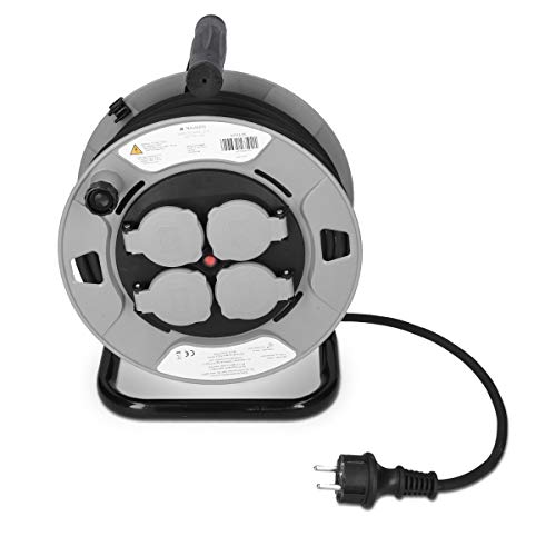Navaris Prolunga Avvolgicavo e 4 prese Shuko - Avvolgicavi interni esterni classe protezione IP44 - Cavo H05RR-F 3G1,5 15m - Lavoro officina cantiere