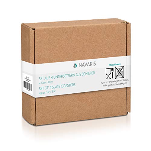 Navaris Set di 4 sottobicchieri in ardesia - decorazioni per la tavola in pietra naturale per bicchieri calici tazze tazzine alimenti dessert - nero