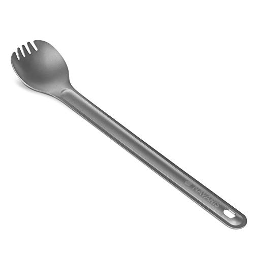 100% TITANIO: lo spork da campeggio è realizzato al 100% in titanio leggero e resistente. La posata da viaggio in metallo pesa poco nello zaino da trekking.