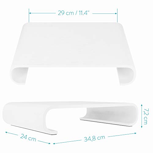 UNIVERSALE: il supporto per schermi misura 7,2x34,8x24cm (superficie utilizzabile 29cm) ed è utilizzabile con la maggior parte dei display: Apple, Dell, Samsung, Asus. Ripiano decorativo, per le scrivanie in ufficio o in studio e in casa.