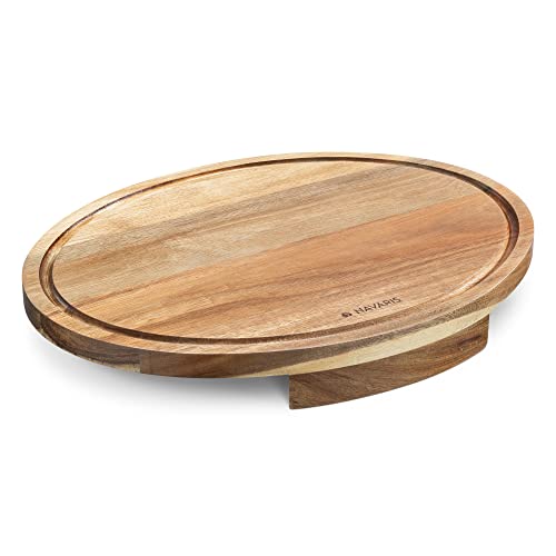 Navaris Tagliere Legno Acacia con Scanalatura - Tagliere Cucina Angolare - Tagliere Salumi Formaggi Aperitivo Ovale - per Lavello Cucina - 32x42x5 cm