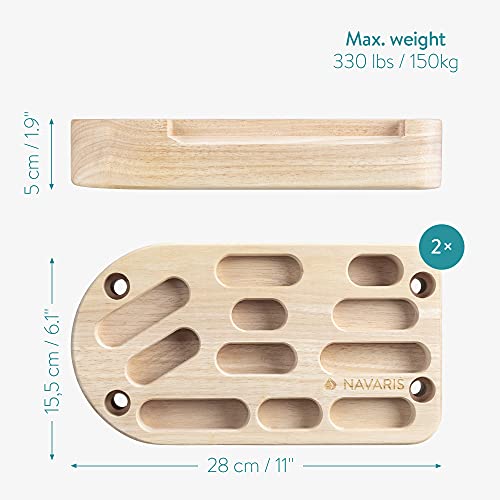 Navaris Tavola Allenamento Arrampicata - Climbing Hangboard - Avambracci Attrezzi Palestra - Allenamento a Casa - 2 Prese Arrampicata Legno Max 150 kg