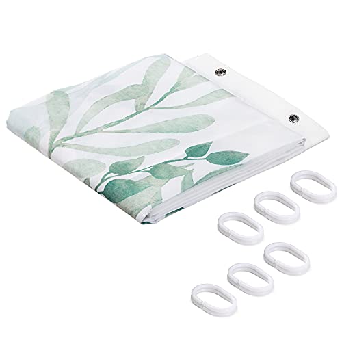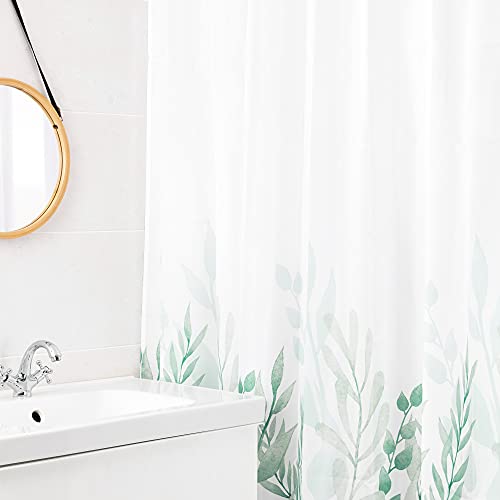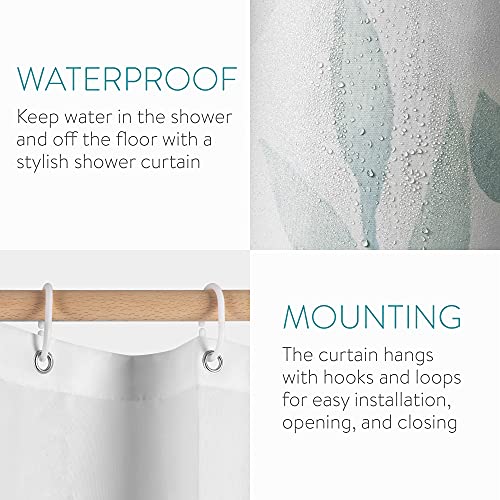 Navaris Tenda Doccia Impermeabile 180x180cm - Tenda da Bagno Antimuffa in Tessuto non Tessuto - Tenda Vasca con 12 Anelli - Bianca/Foglie Piante