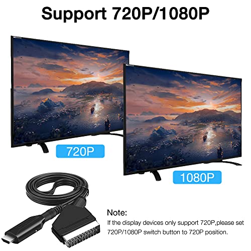 Effetto ad alta definizione: il cavo SCART a HDMI può utilizzare il pulsante di commutazione per convertire il segnale composito in uscita 720P/1080P, rendendo l'immagine realistica, portando te e la tua famiglia una festa visiva più chiara e realistica.