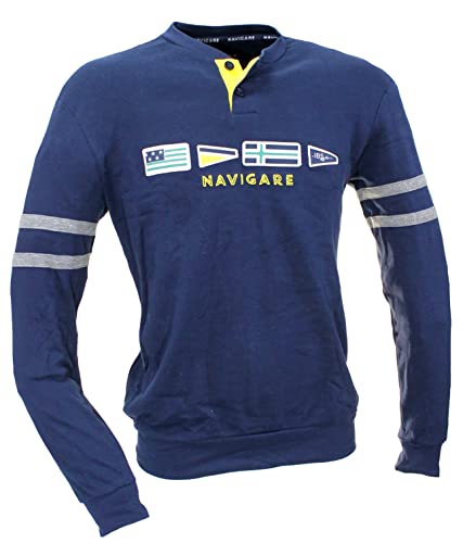 Pigiama Ragazzo prodotto dalla Navigare in caldo cotone interlock e composto da maglia serafino, maniche lunghe con polsini e logo stampato, e da pantalone lungo con polsini e tasca posteriore.