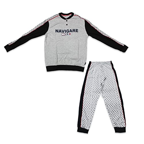 NAVIGARE PIGIAMA UOMO - Scopri la nuova collezione di pigiami per uomo in cotone morbido e resistente. Lo stile senza tempo del classico pigiama è composto da una maglia serafino con logo stampato, e un paio di pantaloni. Per renderlo ancora più accattivante, il comodo pigiama sportivo è disponibile in un'ampia scelta di taglie. Ottimo regalo per Uomo.