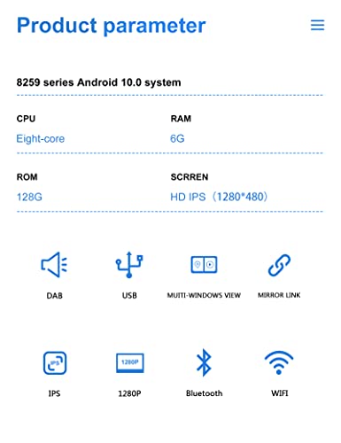 Caratteristiche compatibili: supporta GPS, video 4K, mirroring dello schermo, fotocamera di backup, WiFi, USB, DVR, OBD, TPMS, DAB, controllo del volante, Bluetooth, microfono, ricerca nella rubrica, modalità schermo diviso, CarPlay (NON è necessario il dongle carplay extra).