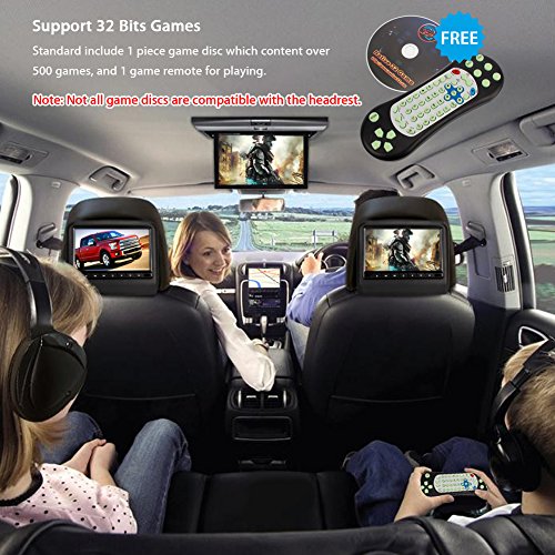 NAVISKAUTO coppia di schermi universali da 9 pollici per poggiatesta auto, con lettore DVD multimediale, monitor LCD, cuffie wireless IR FM e dischi per giochi (nero)