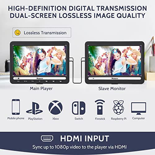 NAVISKAUTO 2 Lettore DVD da Auto Poggiatesta con HDMI IN, 4 Ore di Batteria Ricaricabile, Sincronizza Telefono e Computer Supporta SD/USB ( Lettore DVD Host + Monitor Slave)