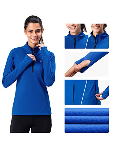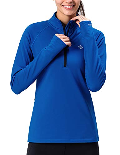 NAVISKIN Giacca da Donna Traspirante Foderato in Pile, Maglia Calore Maniche Lunghe e Asole per Pollici, Slim-Fit con Mezza Zip e Dettagli Riflettenti per AllenamentoHiking, Running, Corso e Sci ECC