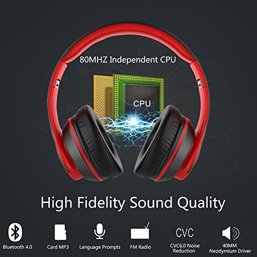 【 Bluetooth 4.1 + Audio impareggiabile qualità 】 Le cuffie Bluetooth Over-Testa è dotato della più recente tecnologia wireless Bluetooth 4.1. Il Bluetooth Headset può ridurre rumore ambientale, alti/medio/basso equilibrio che garantiscono ottima musica