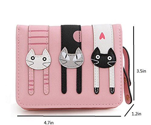 Nawoshow donne gatto sveglio della moneta del raccoglitore borsa Bifold Portafoglio Pochette (Rosa)
