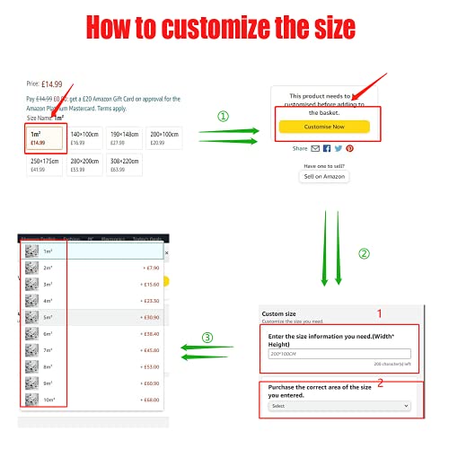 Se queste taglie non soddisfano i tuoi requisiti, le dimensioni personalizzate sono supportate. Devi solo pagare per l'area della carta da parati della dimensione necessaria e contrassegna la dimensione necessaria e il calcolo dell'area = larghezza * altezza.