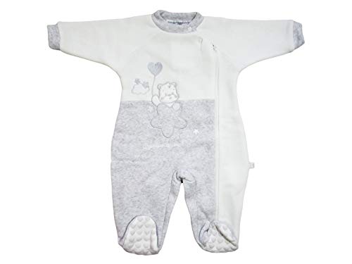 Nazareno Gabrielli Pigiamone Invernale Stelle Bimbo 6/24 Mesi in Cotone Ricamato con Zip - Art- 2255 (9 Mesi, Grigio)
