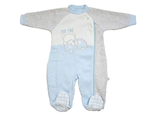 Nazareno Gabrielli Pigiamone Invernale Treno Bimbo 6/24 Mesi in Cotone Ricamato con Zip - Art- 2260/3 (9 Mesi, Celeste)