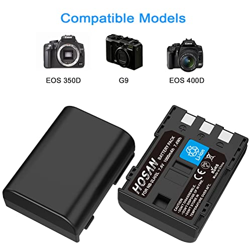 NB-2L NB-2LH HOSAN 2 Batteria di Compatibile con Serie Canon NB-2L NB-2LH HF R10, HF R11 PowerShot G7 G9 S30 S40 S45 S50 S60 S70 S80 EOS 350D 400D HV30 DC300 HG10 IXY DVM3 DV5 DV3 FV