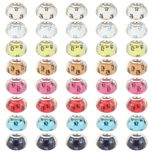 NBEADS 100Pcs Pandora Style Large Hole Charms Acrilico Perline Distanziatori Con Zampa di Cane Stampe Bracciale Con Charm Europeo Adatto