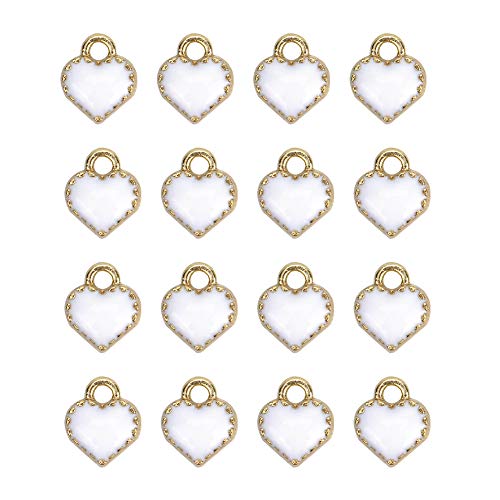 NBEADS 100Pcs Lega Smalto Cuore Ciondoli per Creazione di Gioielli Fai Da Te,8 X 7.5 X 2.5 mm, Foro: 1.5 mm White