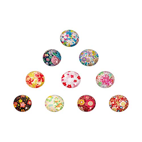 NBEADS 10PCS 12 mm Flat/Dome Floreale Stampato di Vetro cabochon Cameo cabochon per la creazione di Gioielli, Vetro, Mixed Color, 20mm(10pcs)