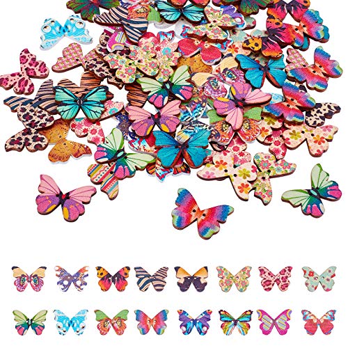 NBEADS 120pz bottoni in legno a forma di farfalla, 2 fori, colori misti, per cucito, scrapbooking, fai da te, accessori per abbigliamento