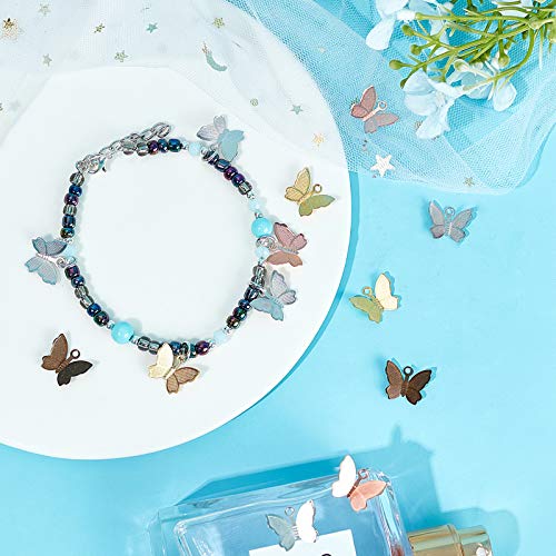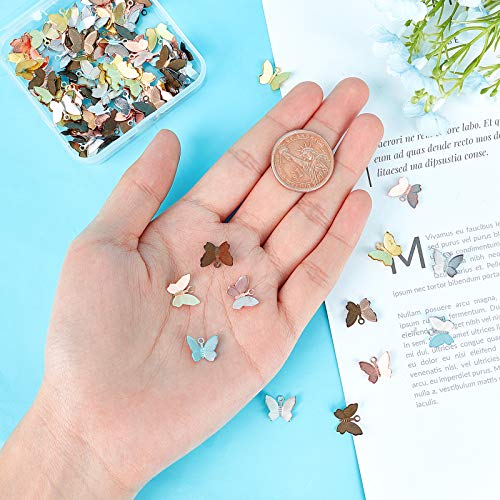 NBEADS 120pz ciondoli a forma di farfalla, in ottone, 11x13,5mm, 4 colori assortiti, piccoli ciondoli a forma di farfalla, in ottone, per realizzare gioielli, gioielli fai da te