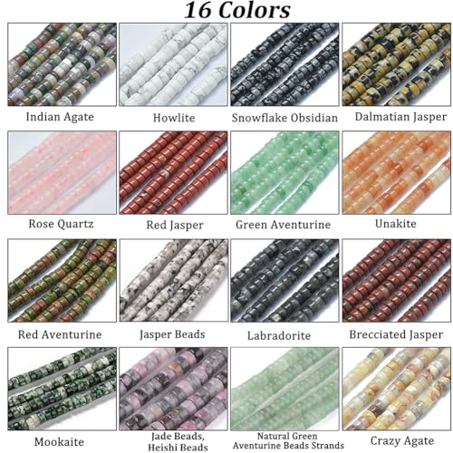 NBEADS 160pz Perline di Pietra Heishi Naturale, 16 Stili Piatto Rotondo Perline di Pietra Distanziatore Disco Circa 4×2mm Sintetiche Allentate Naturali per Braccialetti Orecchini Creazione di Gioielli