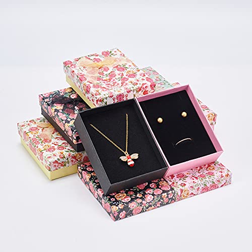 NBEADS 16 pz 9x7x3cm Scatole per Orecchini di Gioielli in Cartone, Set di Carta Scatole Scatole Regalo con Fiocco in Nastro e Spugna Nera per Bracciale, Collana, Orecchini Pendenti, 4 Colori